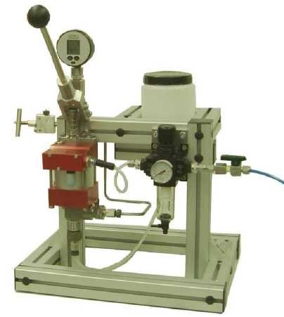 Максимальный выход составляет 70 МПа (10’000 psi). Система поставляется в комплекте с пневмогидравлическим насосом, манометром, воздушным регулятором, предохранительным клапаном и рамой.